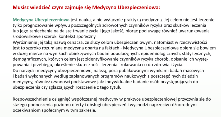 Medycyna Ubezpieczeniowa jest nauką, a nie wyłącznie praktyką medyczną.